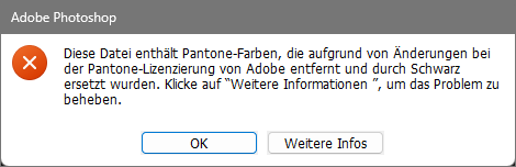 Nutzer sehen nur noch SchwarzAlle bislang verwendeten Pantone-Farben, die hinter der neuen ‚Paywall‘ verschwinden, werden durch schwarze Flächen dargestellt. Und zwar auch in Dateien, die man vor der Umstellung angelegt hat. Auf Twitter kursieren bereits entsprechende Hinweise und Screenshots sowie verärgerte Kommentare.