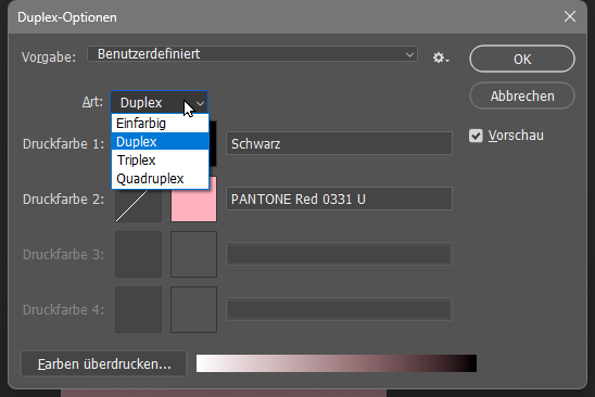 - Wenn du in Photoshop mit Duplex-Bildern arbeitest und dort Pantone Farben verwendest, solltest Du diesen Artikel auf jeden Fall weiter lesen