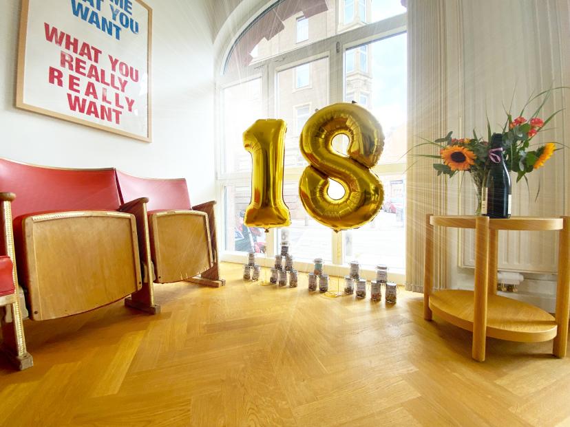 Zum 18. Geburtstag haben wir für unsere Kolleginnen und Kollegen gleich eine ganze Festwoche ausgerufen und locken sie mit leckerem Essen aus dem Homeoffice ins Büro.