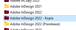 Kopiere dazu einfach den Programmordner von InDesign. Im Screenshot siehst du, dass ich das „Original“ von „Adobe InDesign 2022“ habe und eine „ - Kopie“.