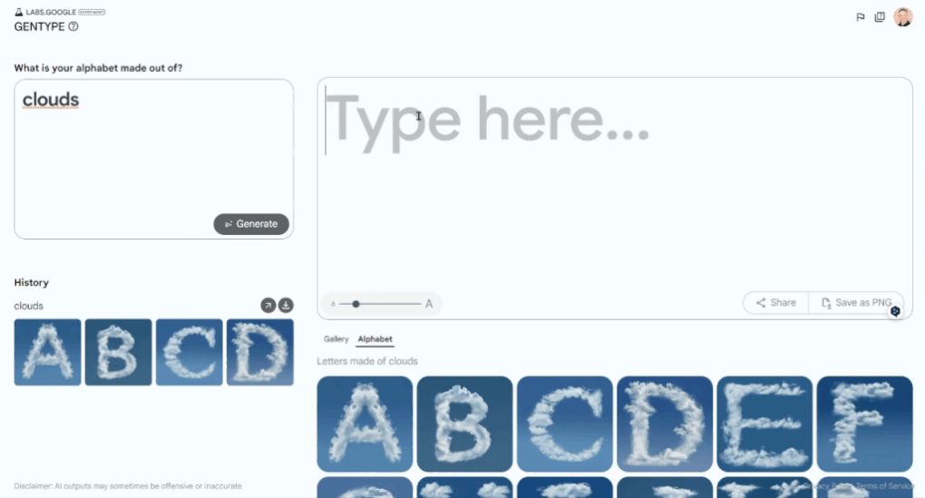 Heute kommt ein weiterer, kleiner Tipp aus dem Bereich Typographie und Gestaltung. Spielereinen mit Buchstaben ermöglicht ein aktuelles Experiment der „Google Labs“. Es hört auf den Namen „Gentype“.