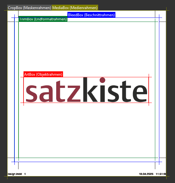 Aus unserer Fancommunity 😮 kommt ein weiterer, toller Tipp. Wir hatten im Herbst 2024 die Firma Callas zu Besuch bei der "Publishing Usergroup Stuttgart" und die haben unter der Überschrift "PDFs ohne böse Überraschungen" das Programm pdfToolbox vorgestellt. Das kostet zwar Geld, aber auch in der kostenlosen Demoversion bietet es wertvolle Funktionen. Unter anderem einen hilfreichen Blick auf die Boxen. Und zwar so, wie ich es mir von Acrobat erhofft hätte: Mit Beschriftung. Danke Sebastian!