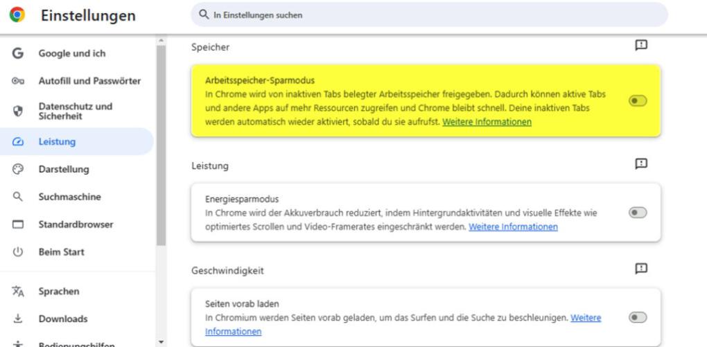 Der Arbeitsspeicher-Sparmodus – ein Feature, das Google 2022 eingeführt hat – soll vor allem leistungsschwächeren Geräten helfen. Unbenutzte Tabs werden in den Ruhezustand versetzt, um Energie und Arbeitsspeicher zu sparen. Doch genau hier können Probleme auftreten. Wenn Tabs oder Fenster plötzlich nicht mehr reagieren, einfrieren oder sogar verschwinden, könnte der Modus die Ursache sein. Laut Google-Support kann der Modus unter bestimmten Umständen zu Fehlverhalten führen (Quelle: Google-Support - https://support.google.com/chrome/answer/12929150?hl=de).